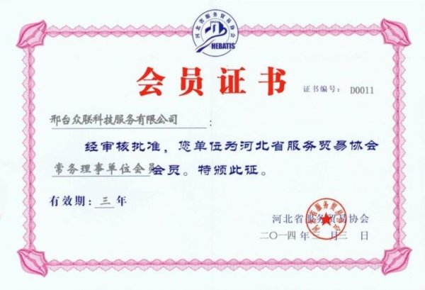 2014年3月 眾聯(lián)科技成為河北省服務貿(mào)易協(xié)會常務理事會員單位。