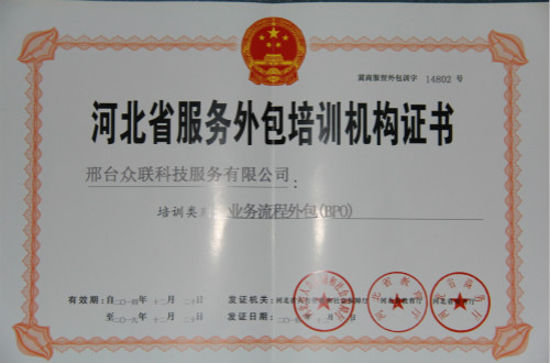 鑒于公司2011年12月申請(qǐng)《河北省服務(wù)外包企業(yè)證書(shū)》和《河北省服務(wù)外包培訓(xùn)機(jī)構(gòu)證書(shū)》兩項(xiàng)證書(shū)有效期限三年到期,我公司于2014年12月再次向河北省商務(wù)廳申請(qǐng)延續(xù),經(jīng)省商務(wù)廳審核,我公司目前發(fā)展情況符合河北省服務(wù)外包企業(yè)和河北省服務(wù)外包培訓(xùn)機(jī)構(gòu)評(píng)定標(biāo)準(zhǔn),于2015年3月成功延續(xù)《河北省服務(wù)外包企業(yè)證書(shū)》和《河北省服務(wù)外包培訓(xùn)機(jī)構(gòu)證書(shū)》。